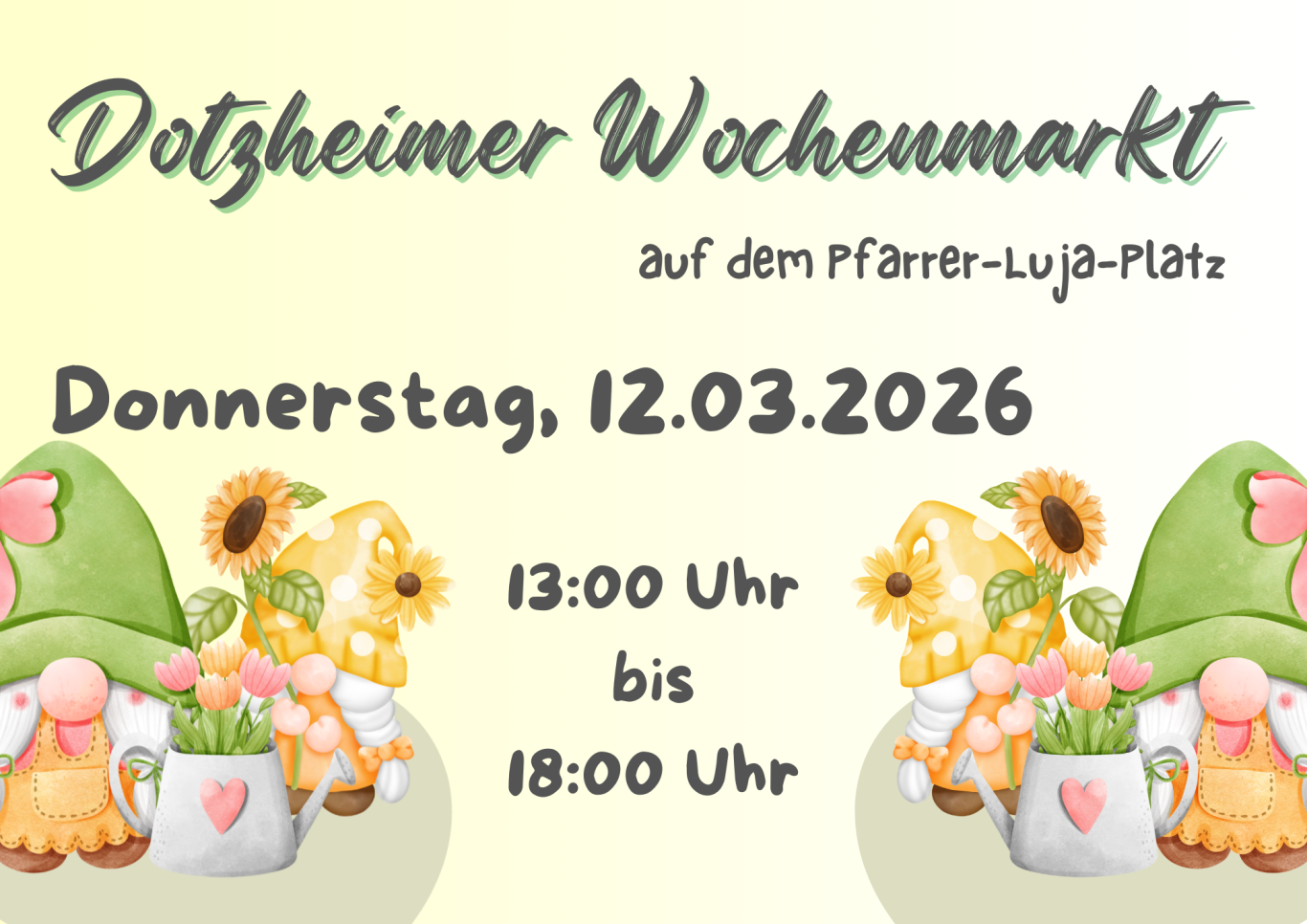 Freuen wir uns gemeinsam auf einen tollen Markttag im Herzen Dotzheims!